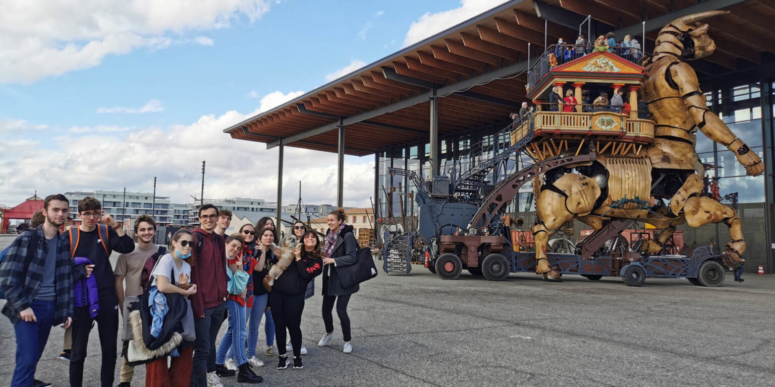 Les étudiants de Prépa Entertainment de Toulouse se sont rendus, en compagnie de leur enseignante Magalie Bergon, à la Halle de La Machine. Antenne toulousaine des célèbres Machines de l’Ile à Nantes qui a ouvert en 2018. L’arrivée dans le Sud de la France s’était faite en grande pompe avec l’organisation de scènes de théâtre à travers toute la ville.